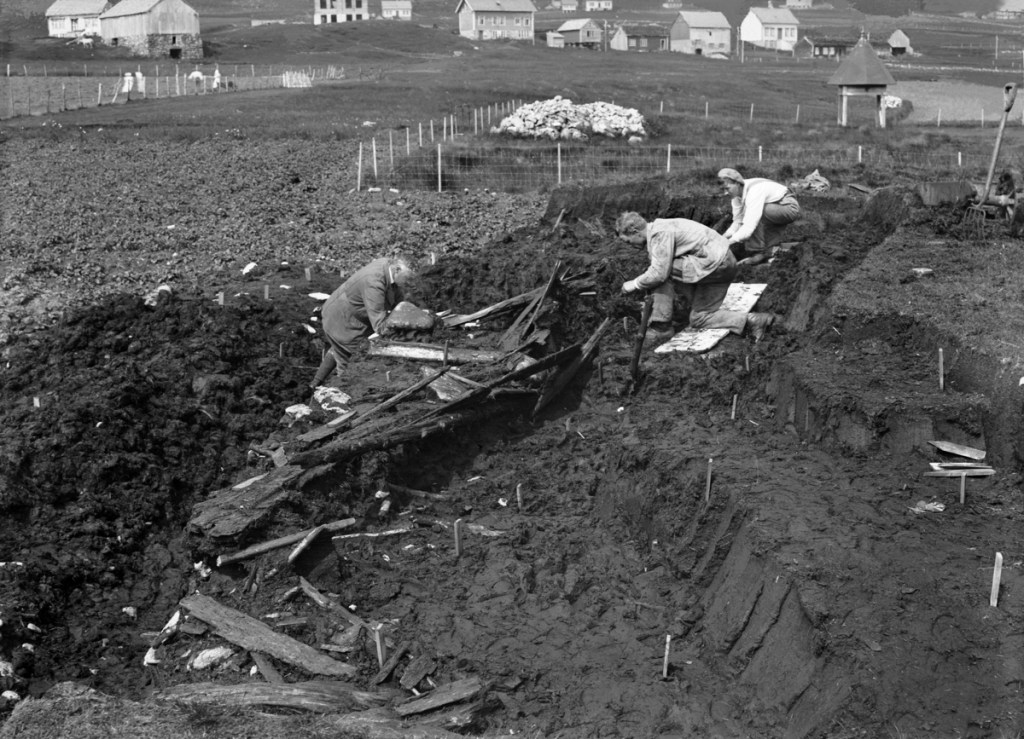The most famous Norwegian case is one of the so-called Kvalsundfunnet from Nerlandsøya in the municipality of Herøy. During the summer of 1920, Johannes J. Kvalsund and his son Jacob uncovered some wooden elements while cutting peat on their farm. The archaeologist Haakon Shetelig from the Bergen Museum immediately travelled to Kvalsund and started excavating with his assistants. The site consisted of scattered and mixed remains of a larger (ca 18 m in length) vessel and a smaller (ca 9.5m in length). All evidence indicated that the boats were intentionally destroyed and put in a peat bog as a ritual offering. In 2020, the Kvalsund ship and boat were dated through dendrochronology, firmly placing their construction in 780–800 AD (Nordeide et al.).